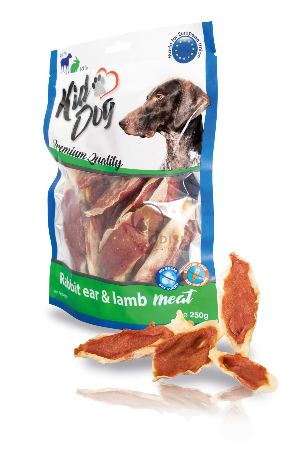 KidDog Rabbit ear & lamb meat - jutalomfalat (nyúlfül, bárány hússal) kutyák részére (250 g)