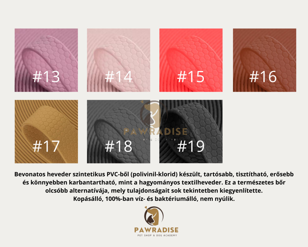 Bizonyos színekre/méretekre csak előrendelés lehetséges. A pórázok elkészítése 1,5 - 2 hét.