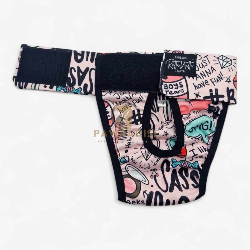 A bugyi rugalmas, légáteresztő és vízhatlan anyagból készül, amely kényelmes viseletet nyújt, nem szorít és nem akadályozza a mozgást. Hatékonyan megakadályozza a szivárgást, ugyanakkor a jobb nedvszívás érdekében javasolt egészségügyi betét vagy mosható textilbetét használata, amelyet szükség szerint cserélni kell a megfelelő higiénia és a kutya komfortja érdekében.