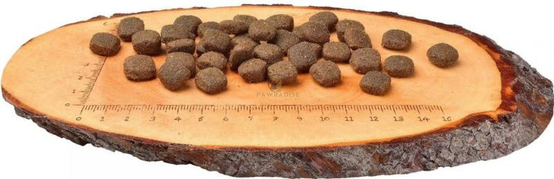 vaddisznó húsliszt (30%), szabad tartású bárány húsliszt (25%), sárgaborsó (20%), csirkezsír (tokoferolokkal tartósítva 10%), csirkemáj (3%), alma (3%), tápiókakeményítő (3%), lazacolaj (2%), sárgarépa (1%), lenmag (1%), csicseriborsó (1%), hidrolizált rákfélék (glükozamin forrás 0,026%), prockivonat (kondroitin forrás 0,016%), sörélesztő (mannán-oligoszacharidok 0,015%), cikória gyökér (frukto-oligoszacharidok 0,01%), jukka kivonat (0,01%), algák (0,01%), útifű maghéj (0,01%), kakukkfű (0,01%), rozmaring (0,01%), oregánó (0,01%), vörösáfonya (0,0008%), áfonya (0,0008%), málna (0,0008%).